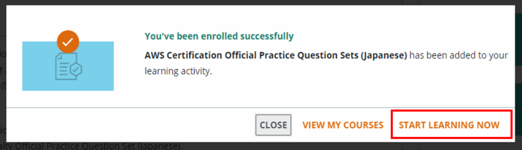 ダイアログが表示されるので「START LERNING NOW」をクリックします。