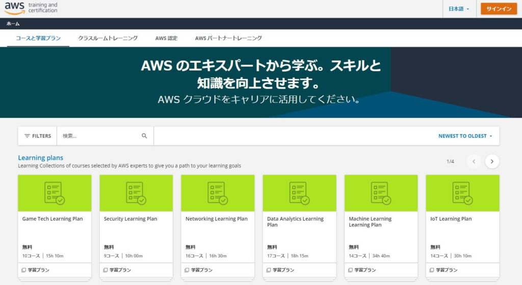 まず、AWSスキルビルダーにログインします。アカウントがなければ登録を行います。