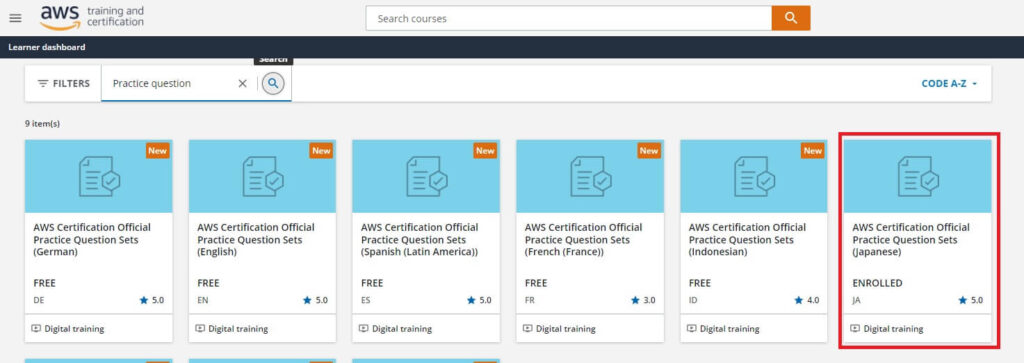 検索結果から日本語用の「Practice Question Sets」をクリックします。