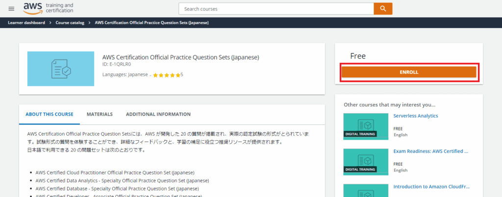 ですので、本試験時は問題文を英語でも確認することをお勧めします。模擬試験では途中で変更はできないようなので受講コース選択時にEnglishを選択する必要があると思います。