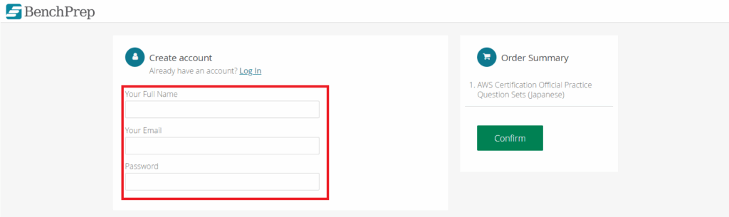 アカウント登録に必要な情報を入力し「Confirm」をクリックします。