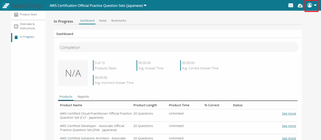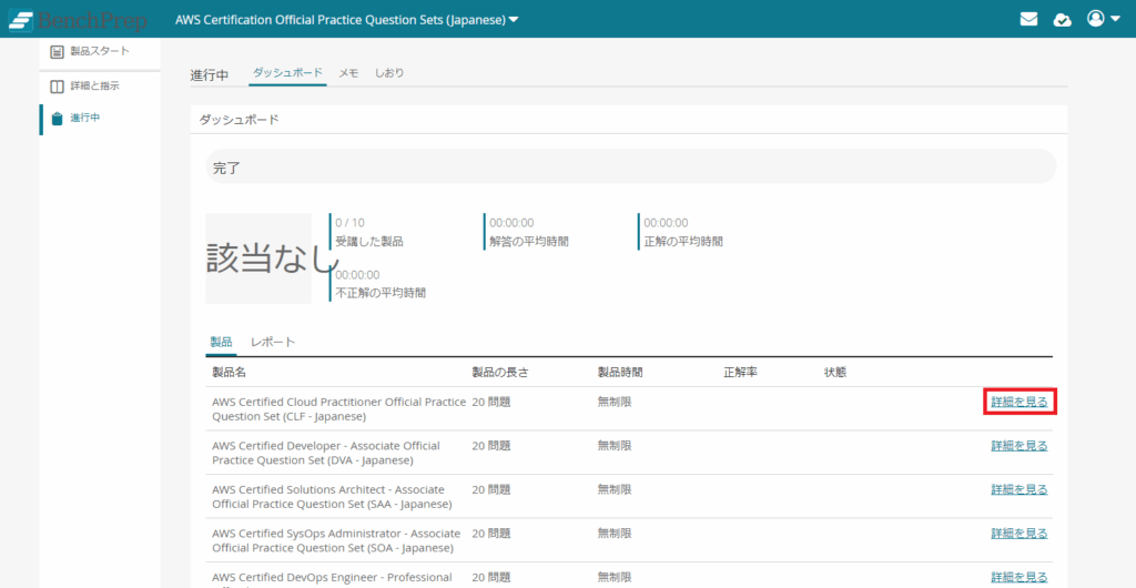 AWS認定資格の模擬試験には「BenchPrep」というサービスを使用します。日本ではあまり利用されていないかと思われますが、こちらは専門資格や教育機関でのクラウドベースでの学習ガイドを提供するサービスとなります。