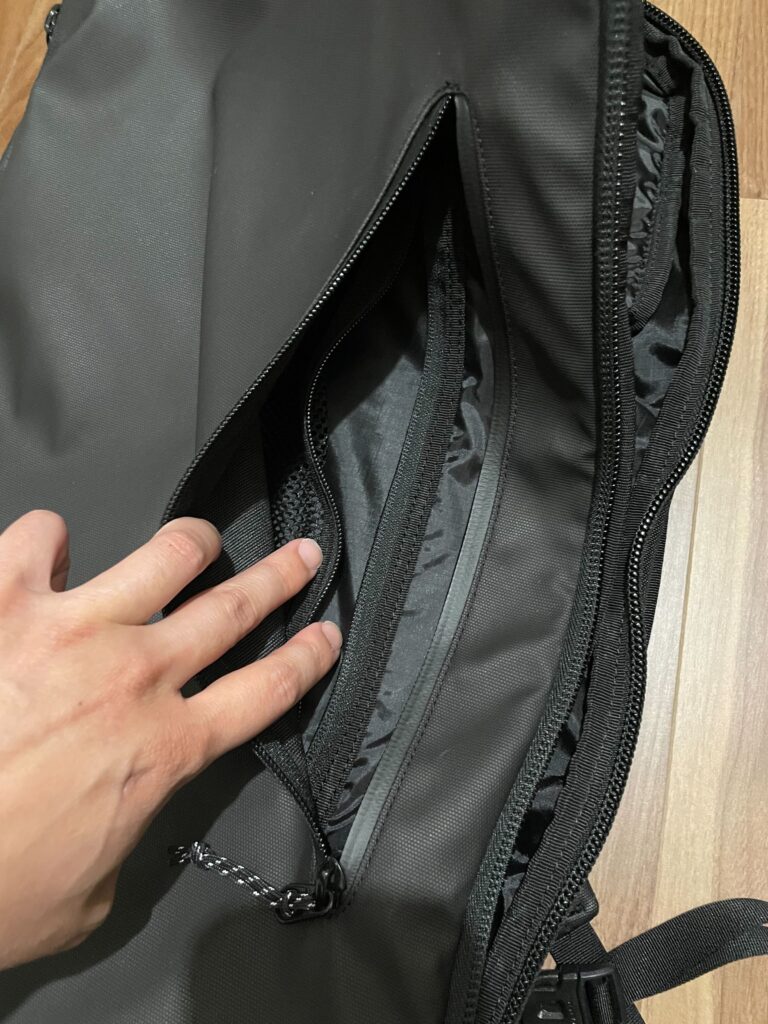 ここは電車等で前にリュックを回して持った際に一番アクセスが早い場所です。