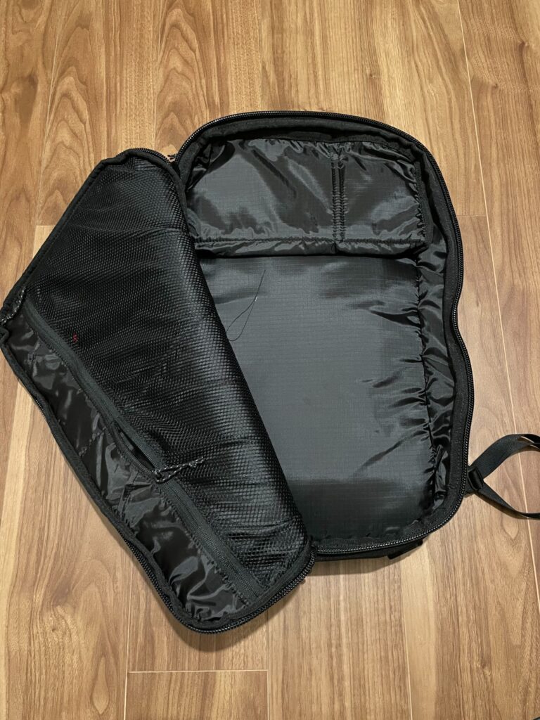 外側のチャックを開けた後にさらにメッシュポケットのチャックを開ける必要があるので